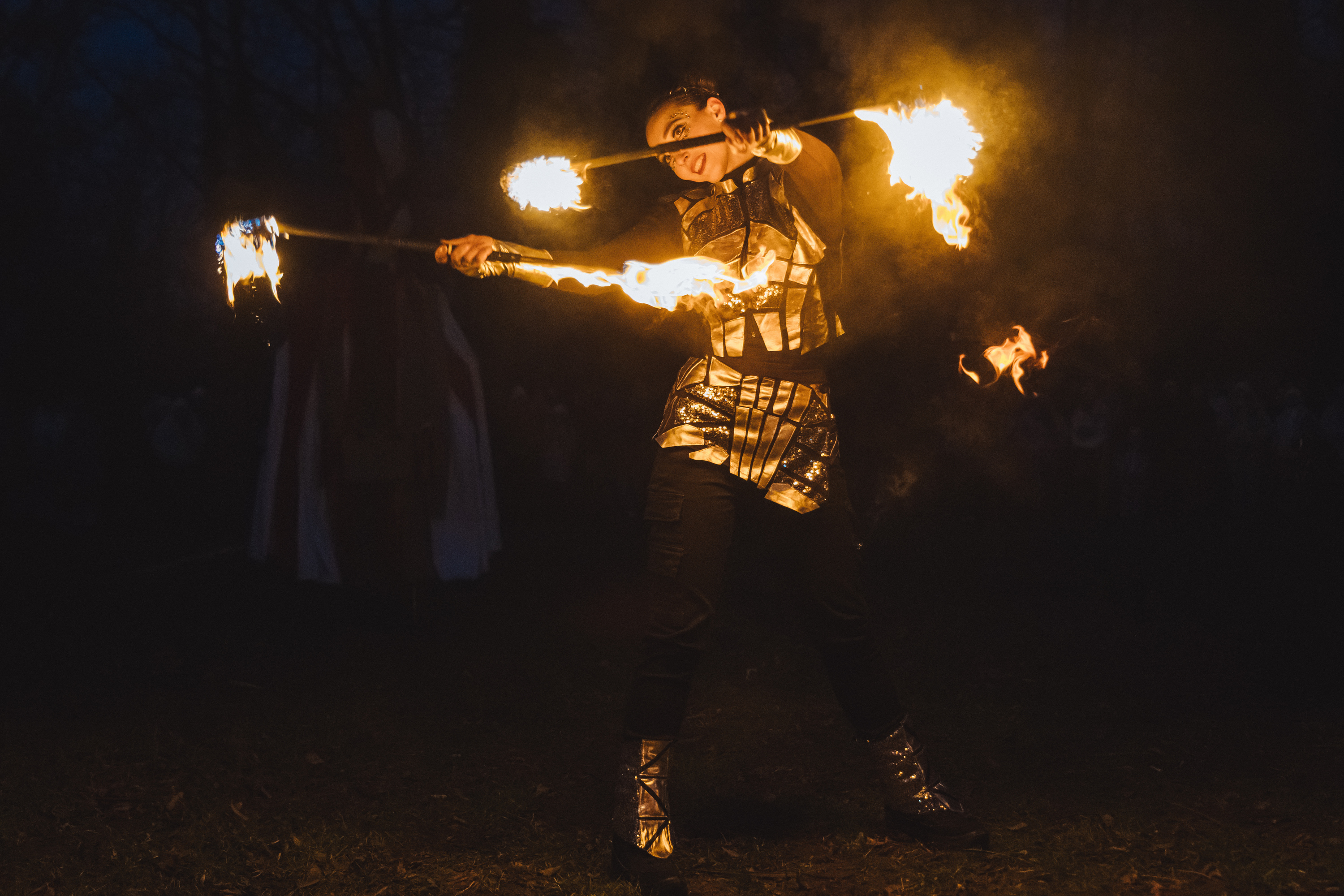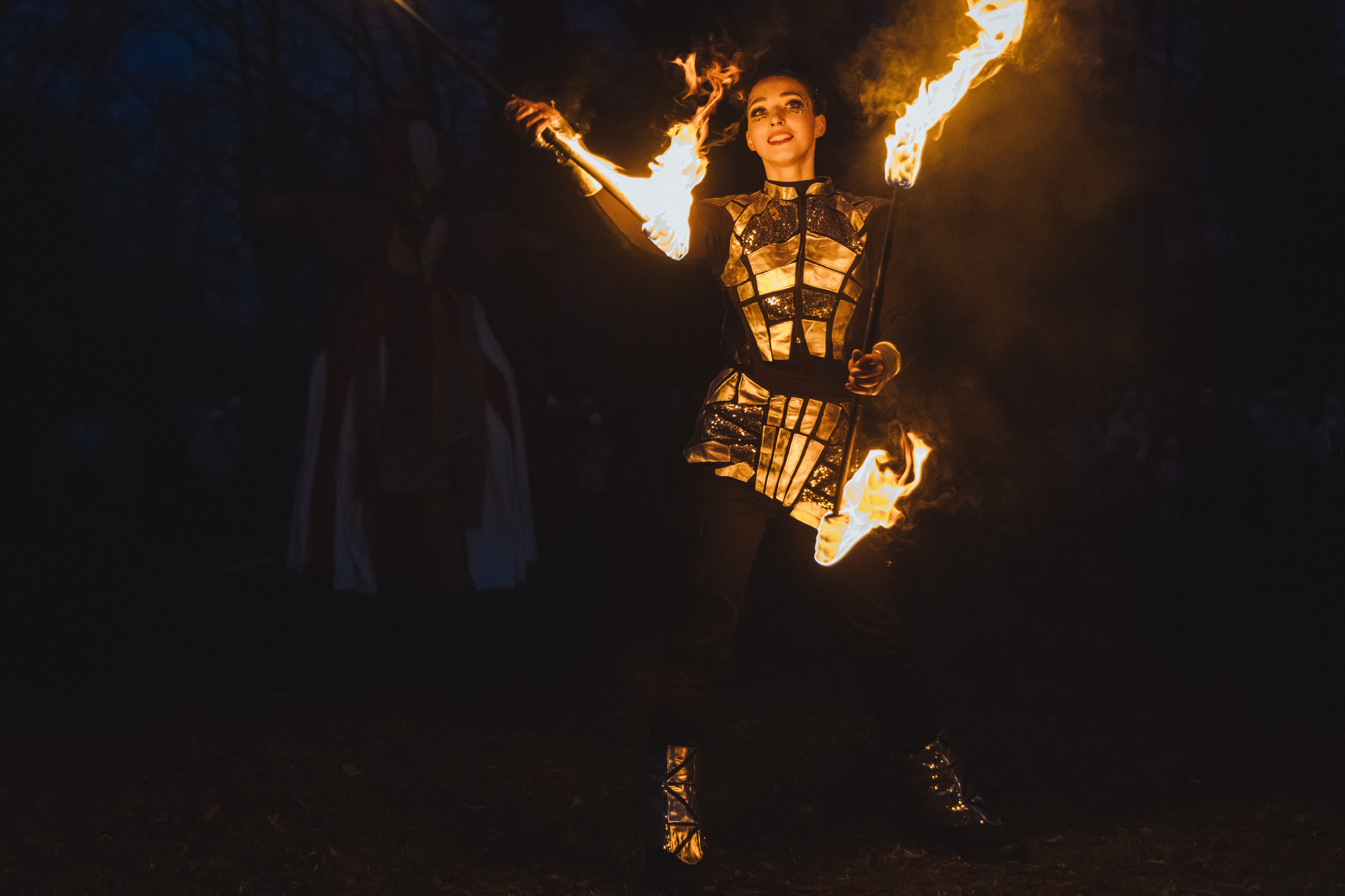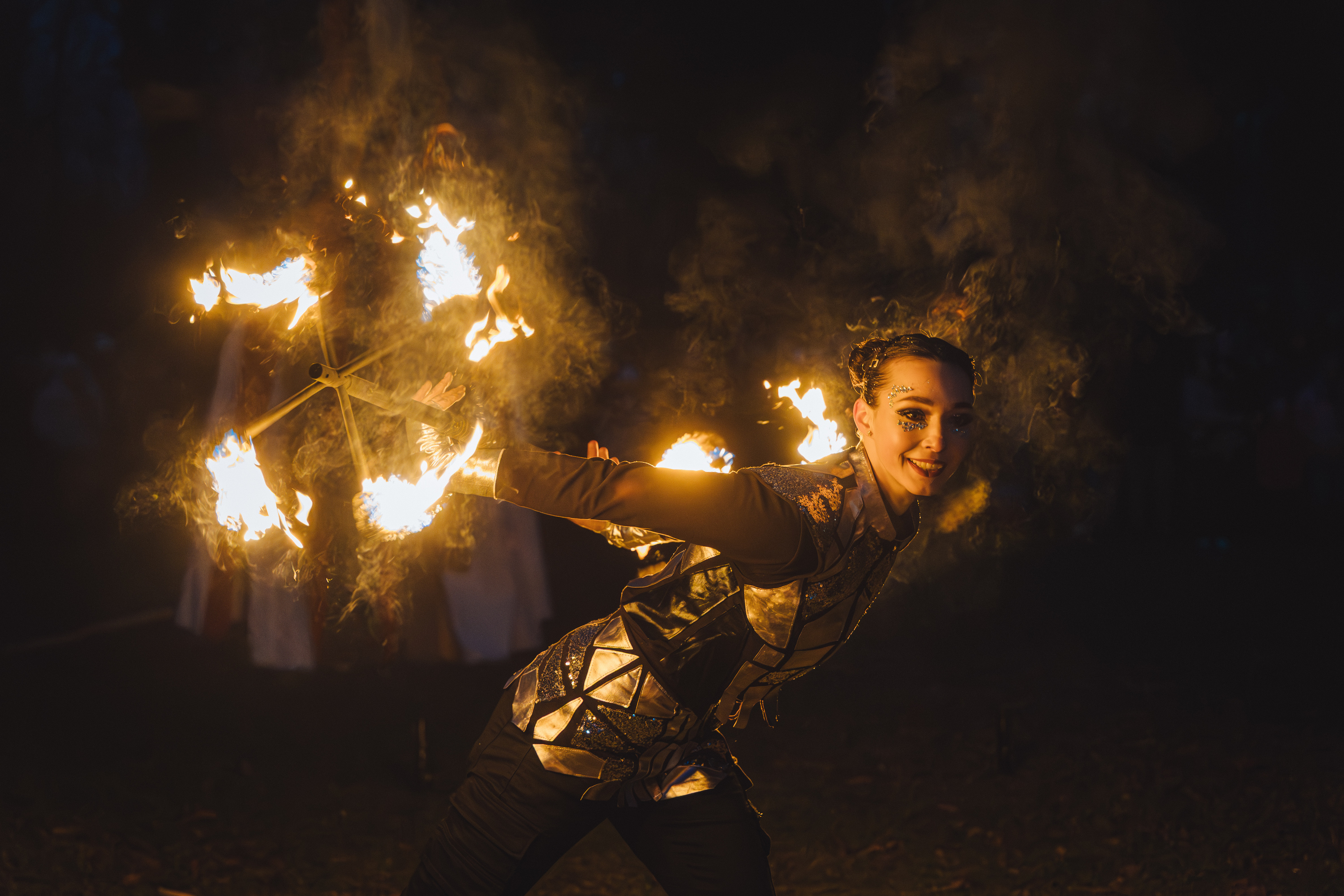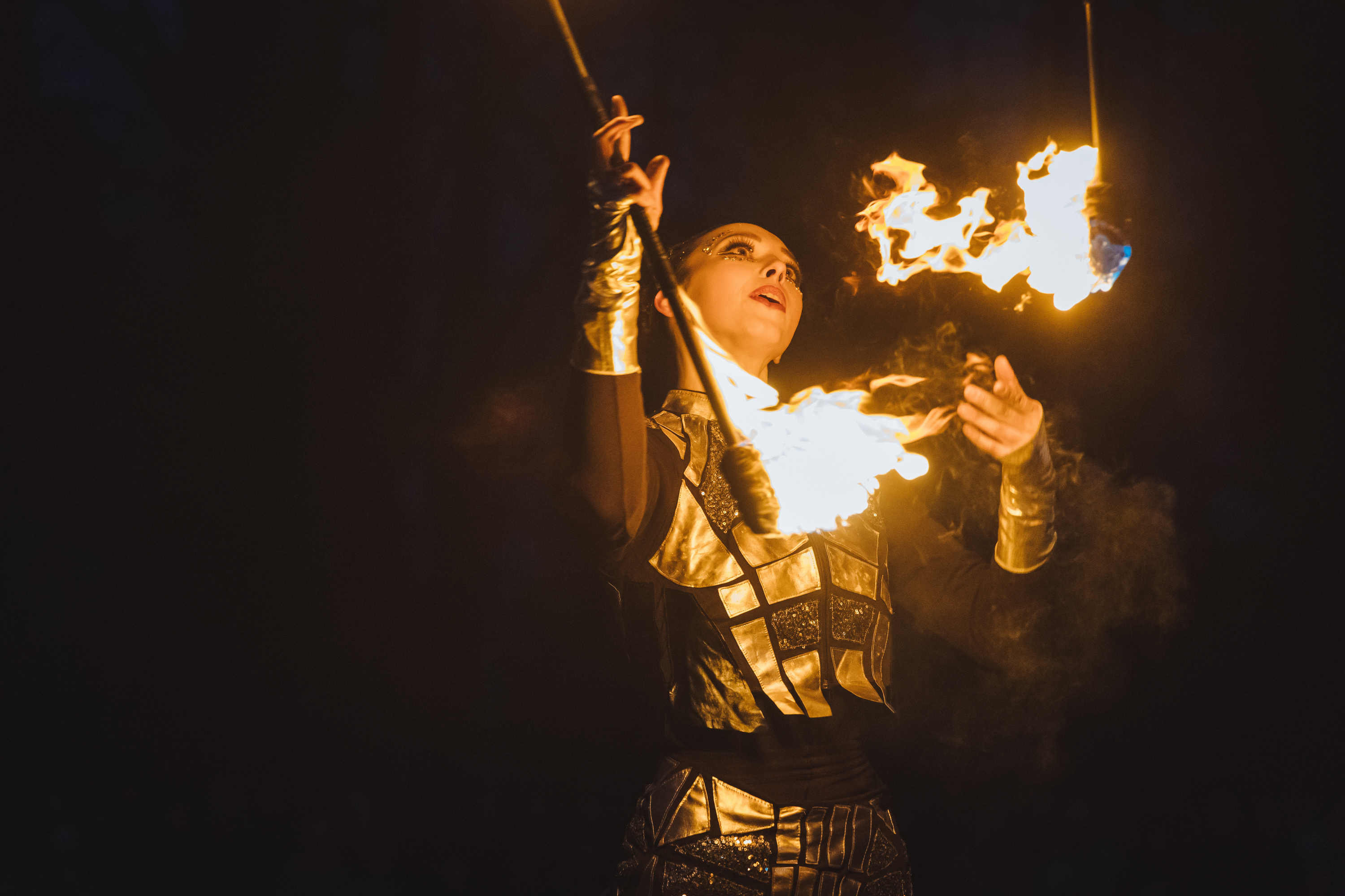 Вогняні інструменти та піротехніка інтегровані у хореографію так, щоб створювати ефект повноцінного сценічного перформансу.