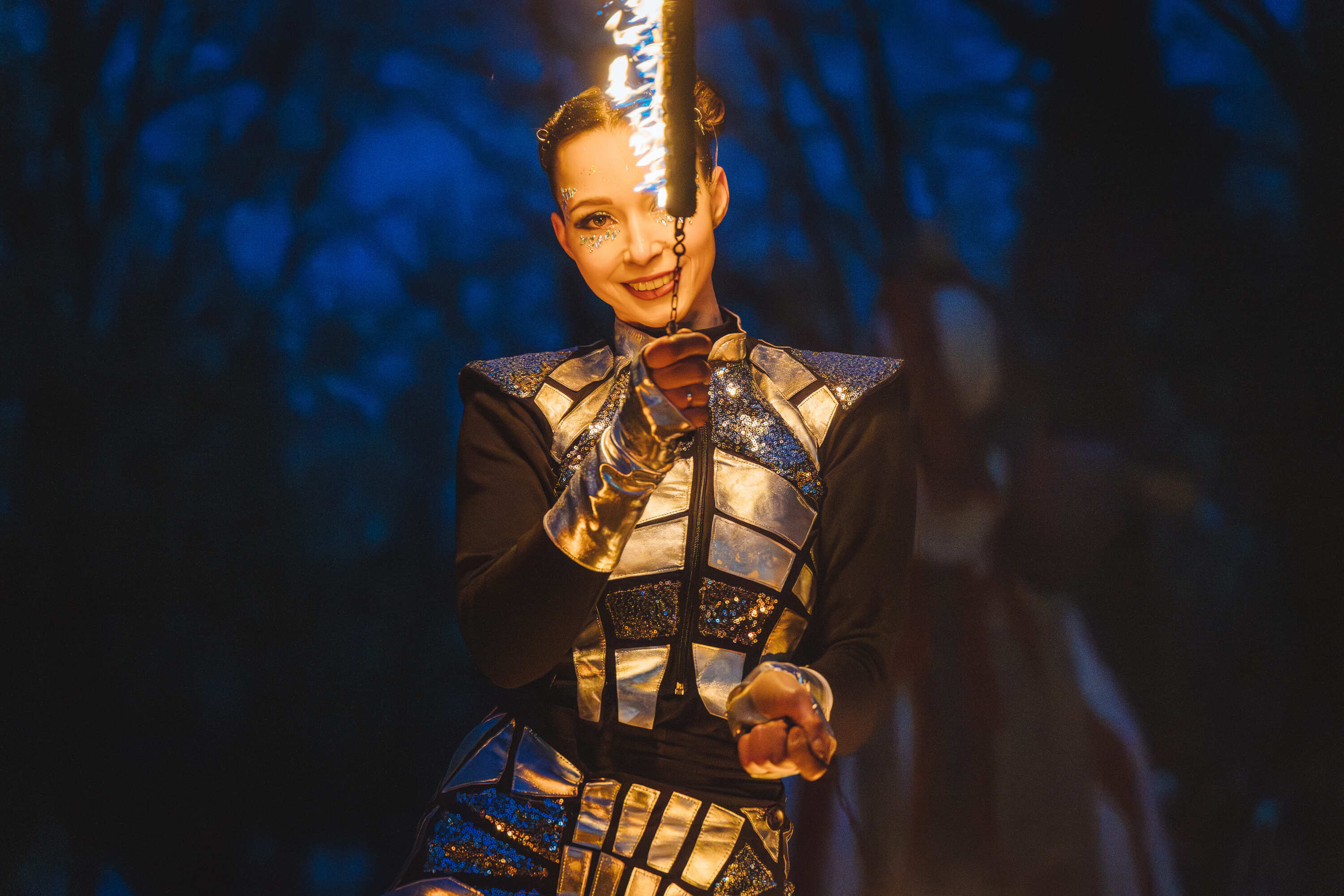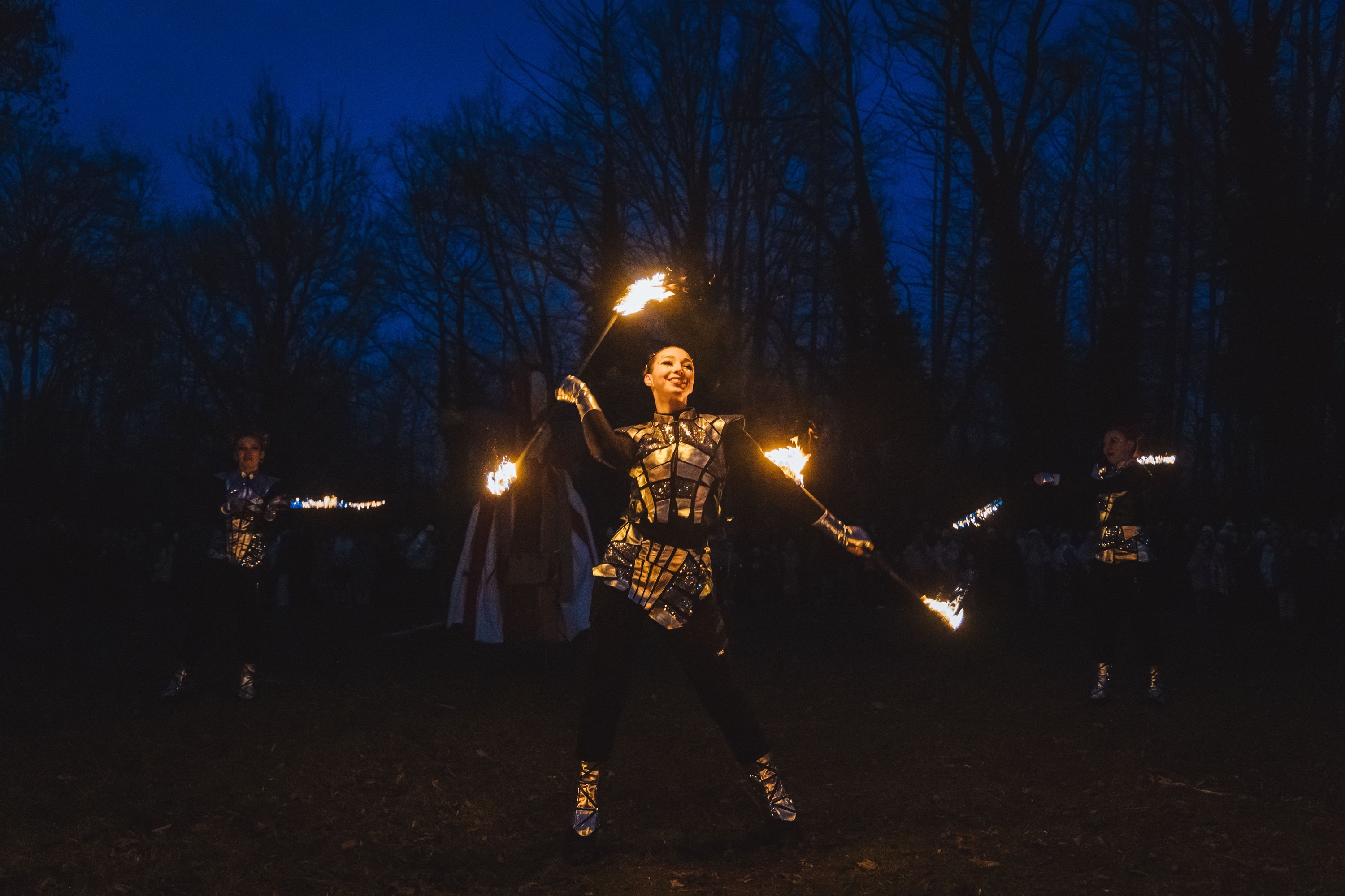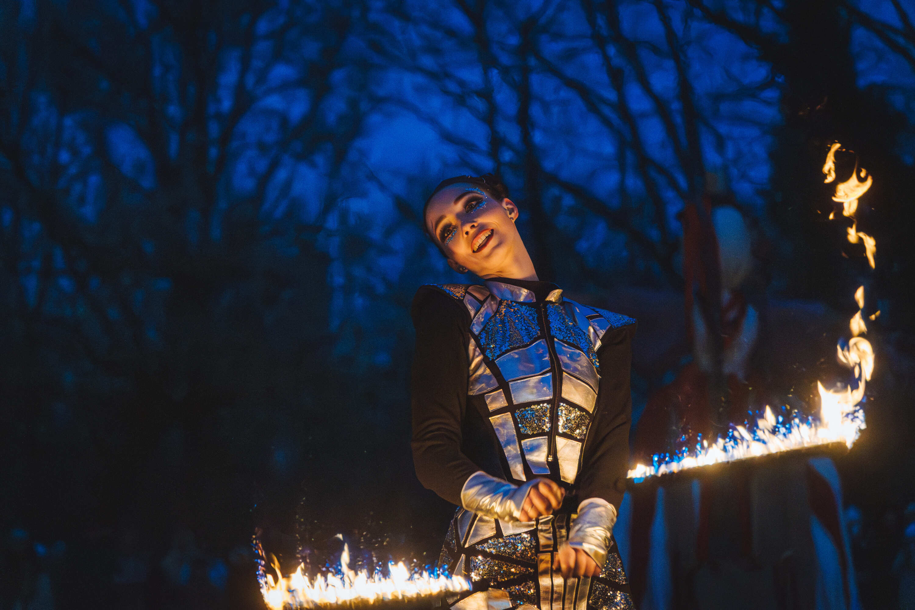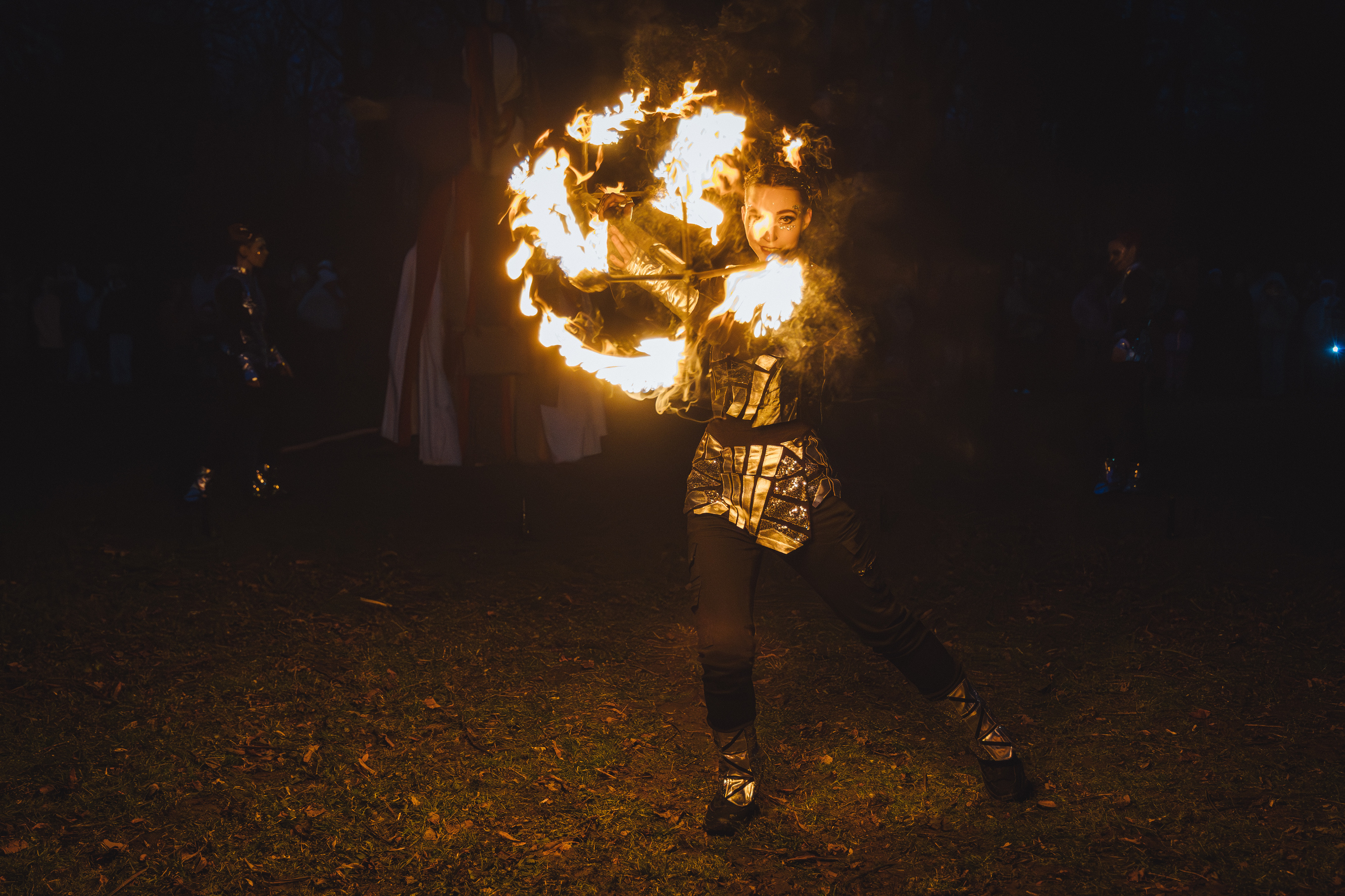 Вогняні інструменти та піротехніка інтегровані у хореографію так, щоб створювати ефект повноцінного сценічного перформансу.