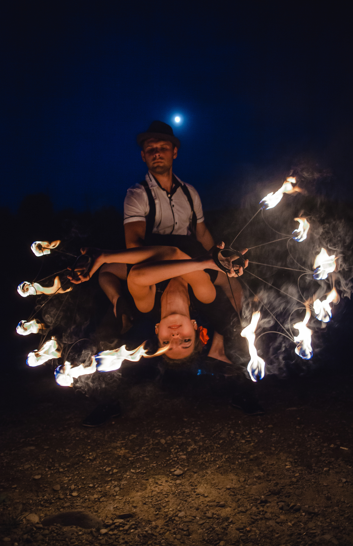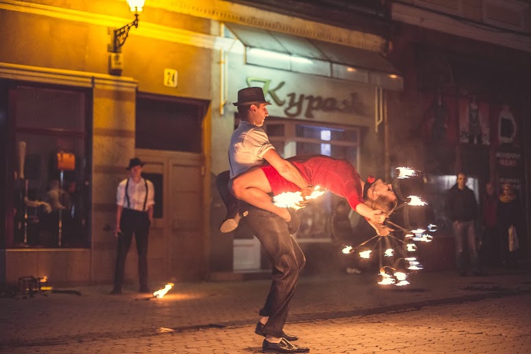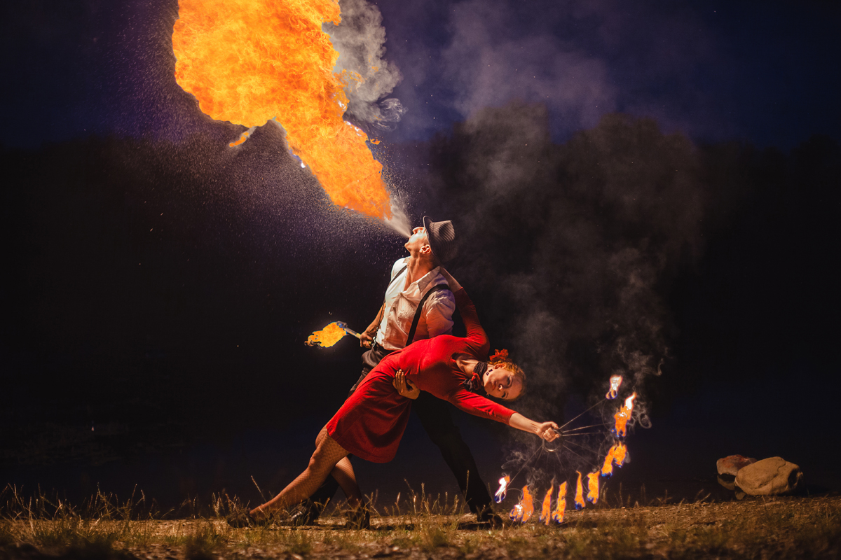 Імпровізаційний виступ з різноманітним вогняним реквізитом |