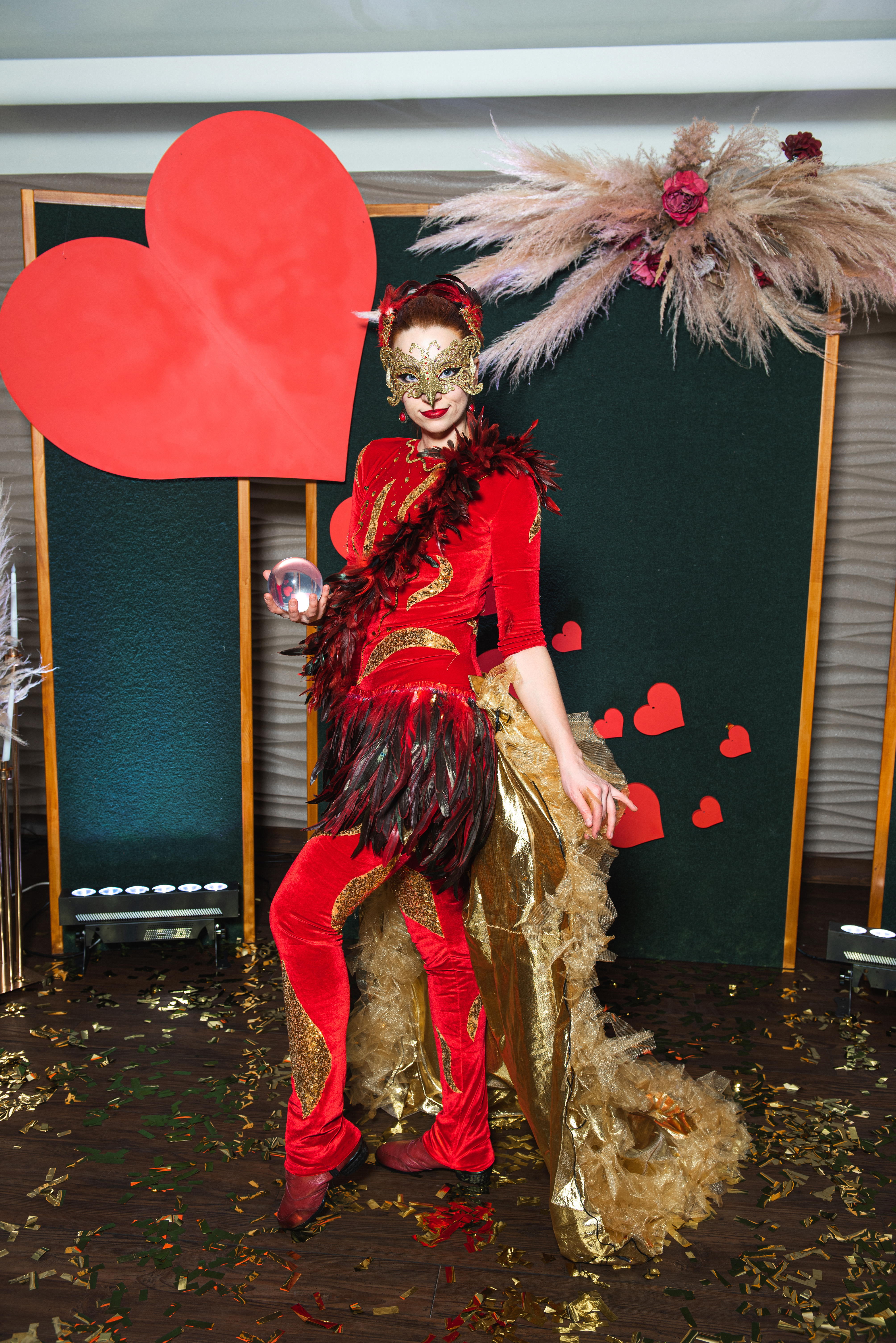 Чи бачили Ви колись як відроджується з попелу міфічна птаха сонячного царства з золотавим, мов жар, пір'ям? Мова йде про дивовижну птаху Фенікс. Кожен рух її сповнений нестримної жаги наповнити простір навколо себе світлом та золотим блиском. Її власна грація і пластичність в поєднанні зі світлодіодними ефектами- візерунками, що вималювуються у повітрі під час її танцю, стануть чудовою прикрасою на Вашому вечорі. А її присутність біля фотозони стане безпрограшною дивовижею на фотографіях разом з гостями.