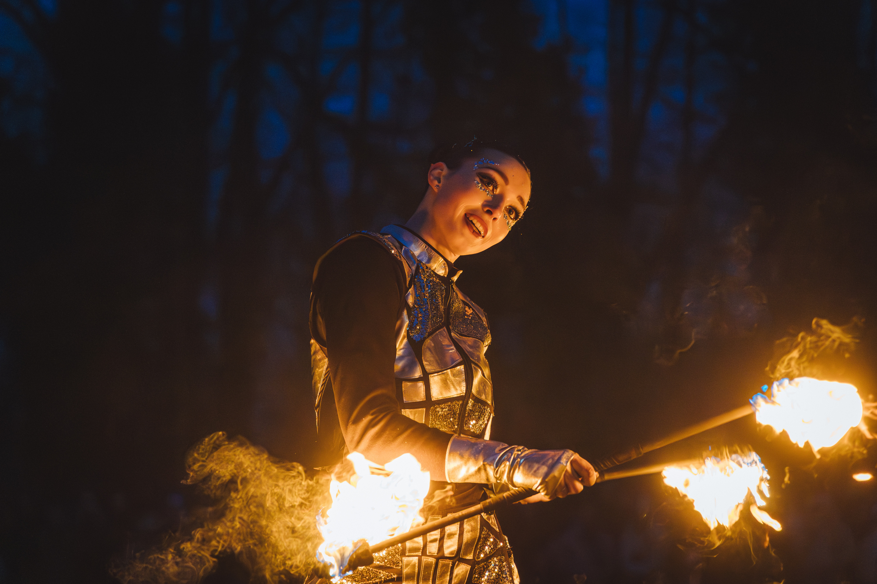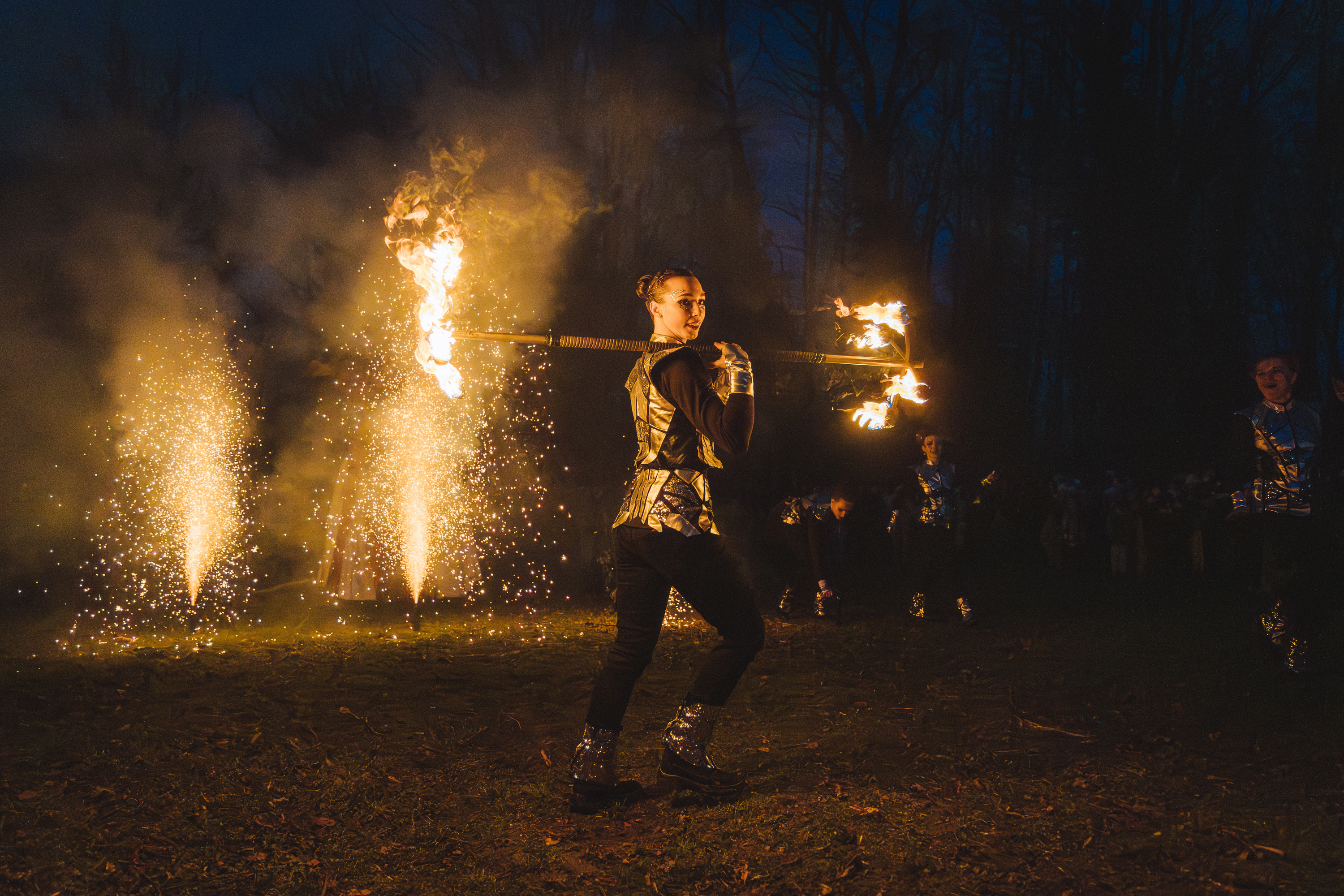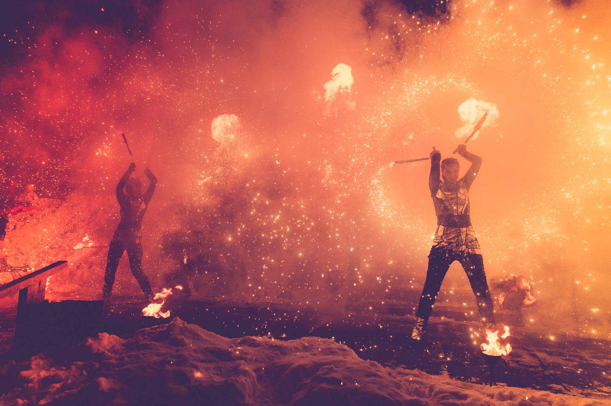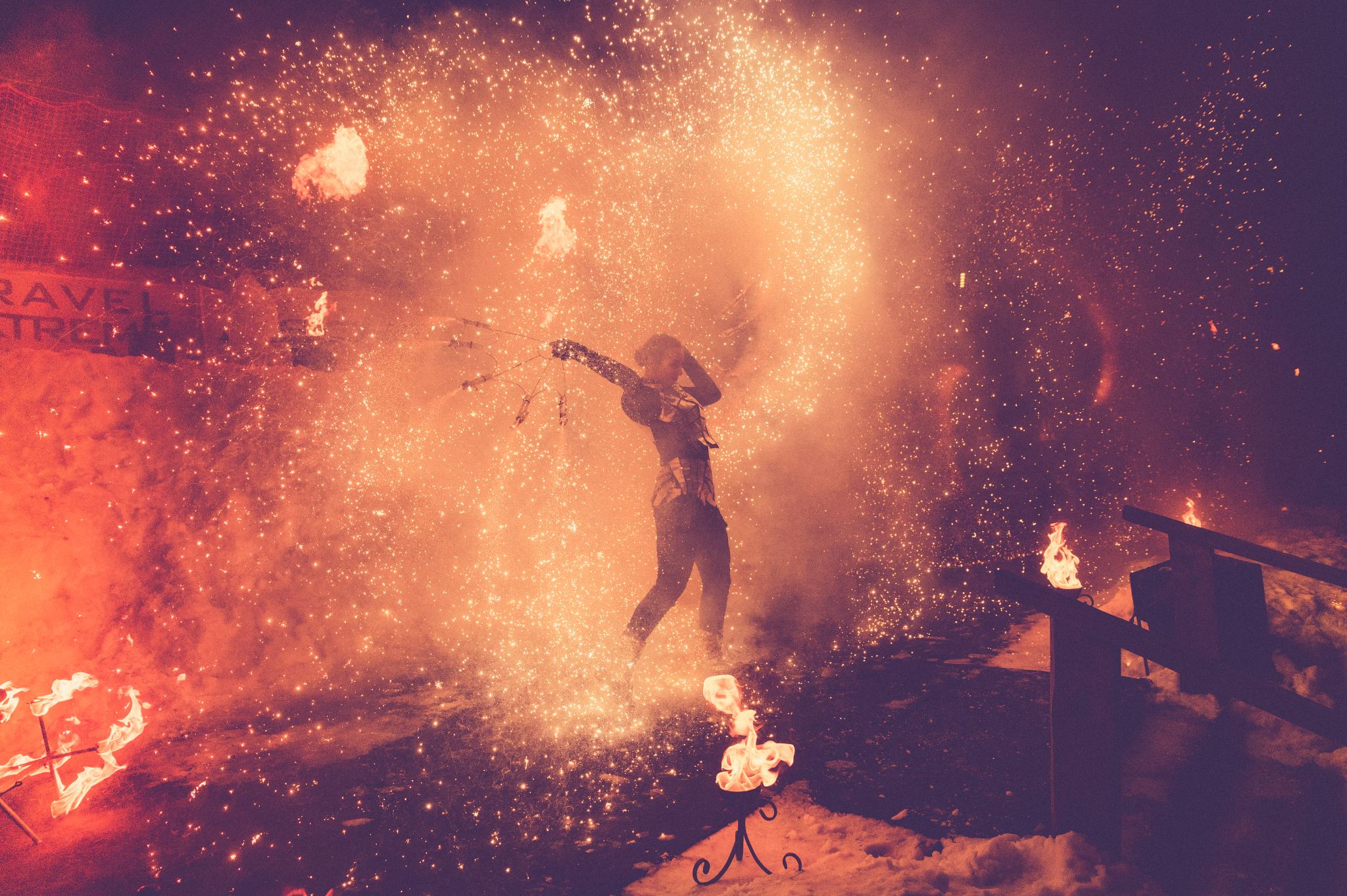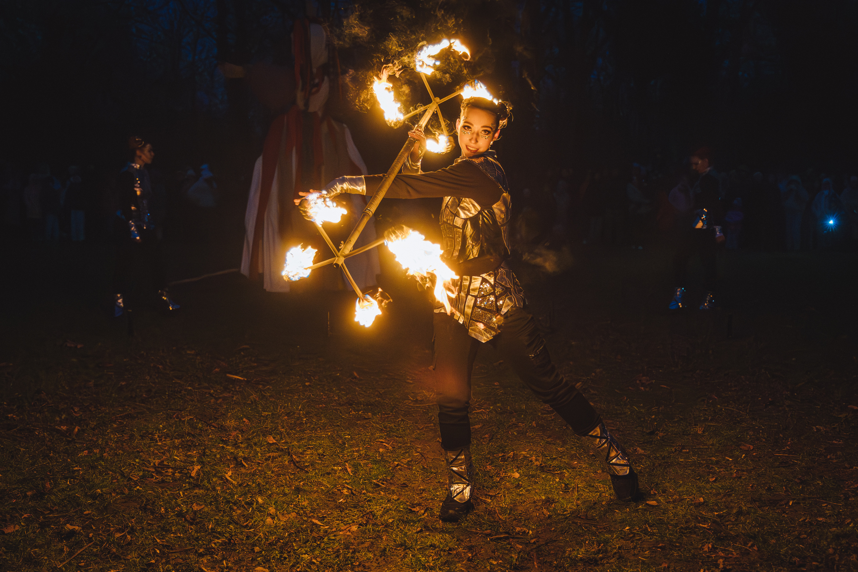 Вогняні інструменти та піротехніка інтегровані у хореографію так, щоб створювати ефект повноцінного сценічного перформансу.